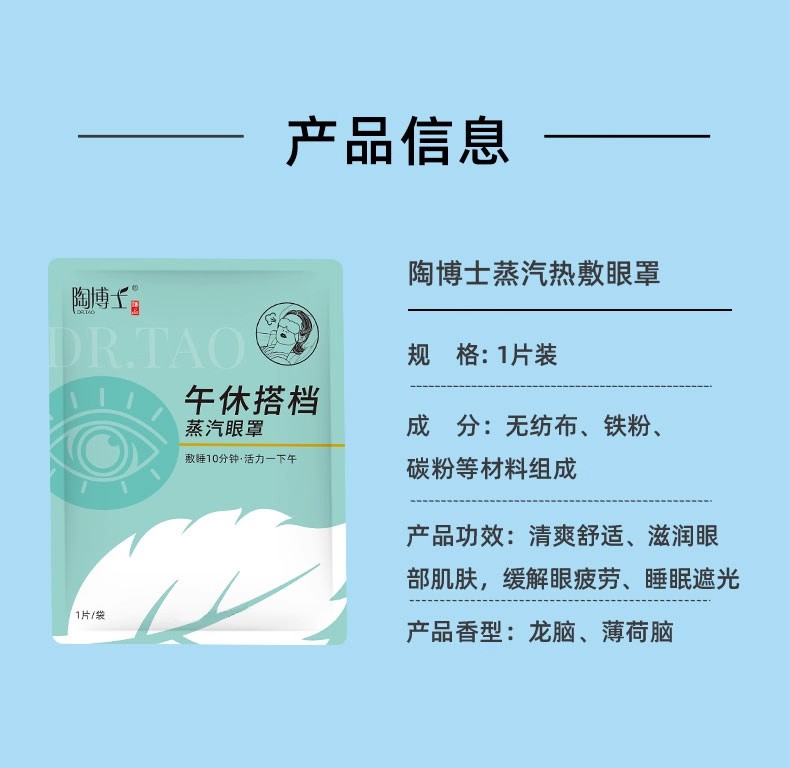 主营产品: 蒸汽眼罩贴牌,蒸汽眼罩加工厂,蒸汽眼罩OEM,蒸汽眼罩ODM,蒸汽眼罩代工,蒸汽眼罩代加工,蒸汽眼罩定做,蒸汽眼罩定制,蒸汽眼罩厂家,蒸汽眼罩生产厂家